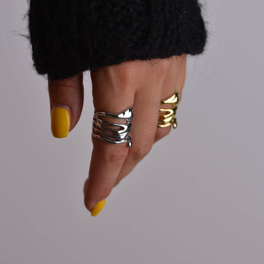 Irregular Silver and Gold Rings